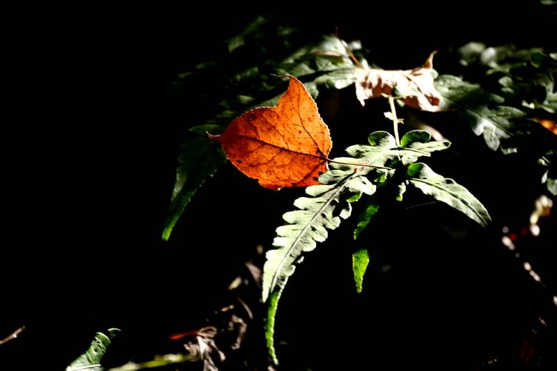红叶映树影
