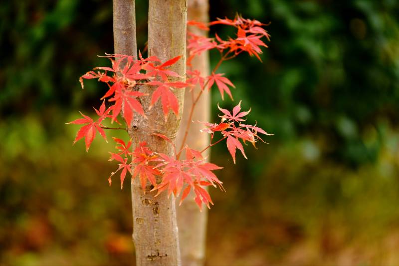 红枫映绿茵