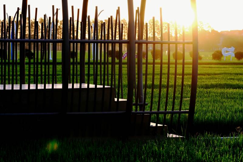 夕阳下的铁栅栏