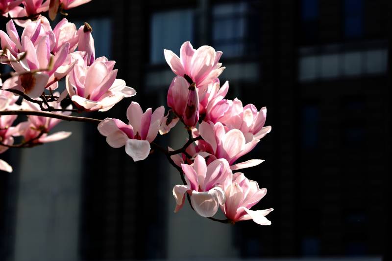 粉红玉兰绽放枝头
