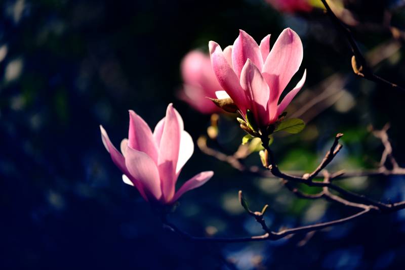 粉红玉兰花绽放