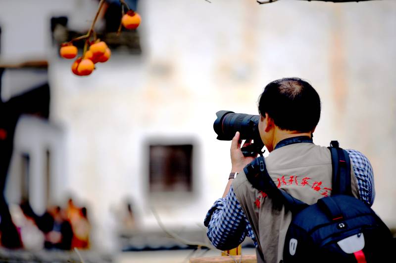摄影者专注拍摄