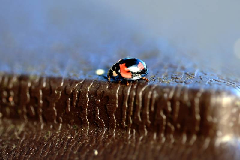 瓢虫静卧木纹上