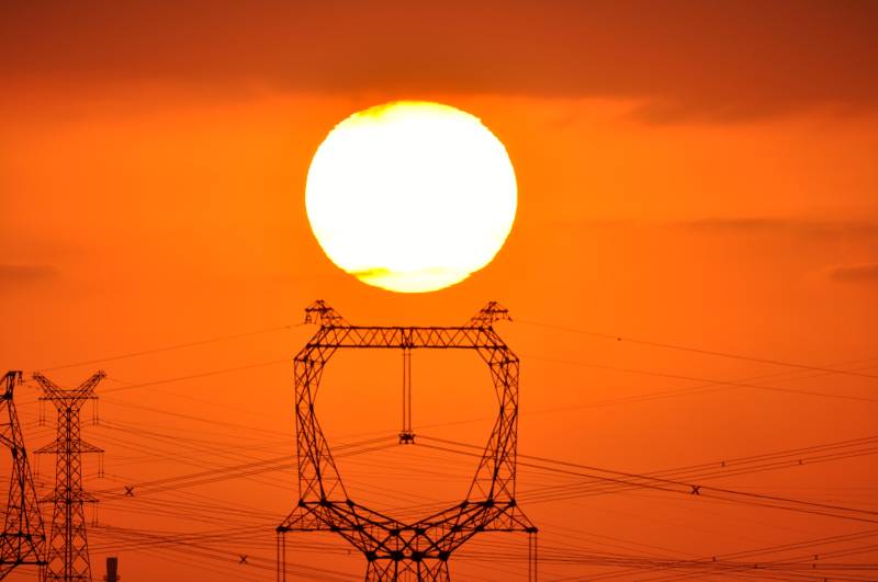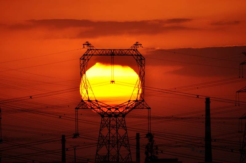 夕阳下的电力塔