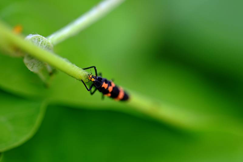 斑脊长蝽栖息绿叶间