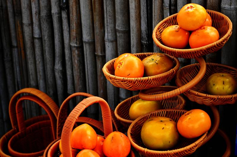 橙黄柿子篮中盛