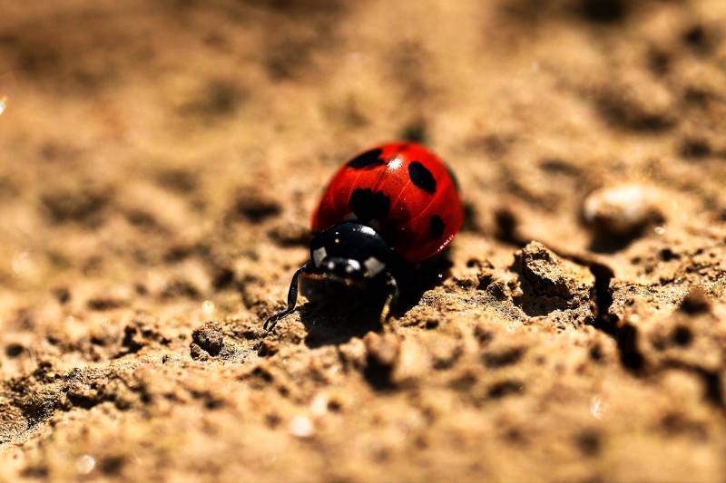 瓢虫在沙地上爬行