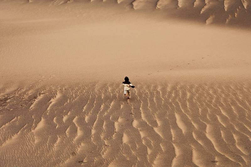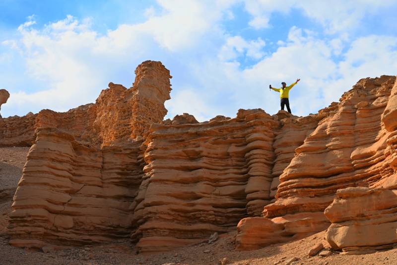沙漠奇岩 一人登顶欢呼(无人区大海道)