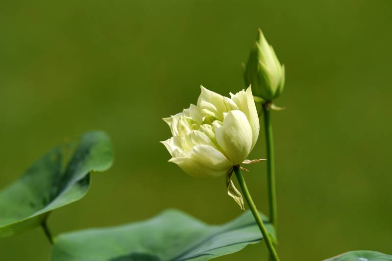 淡黄荷花等待绽放