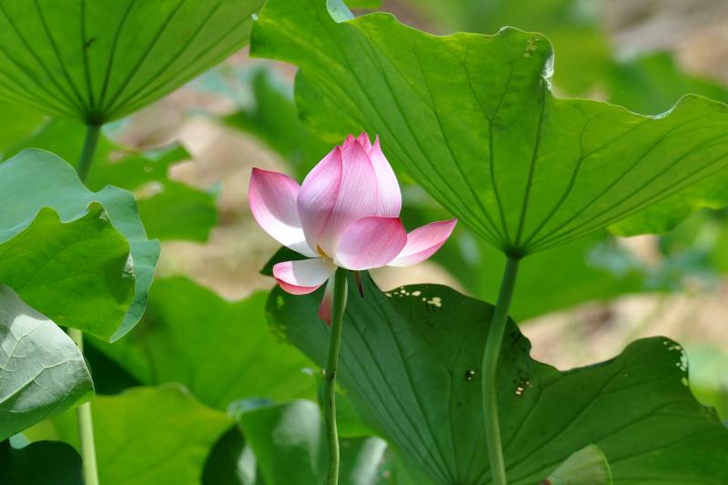 荷花绽放绿叶间