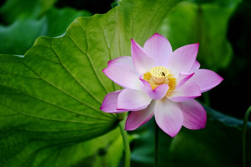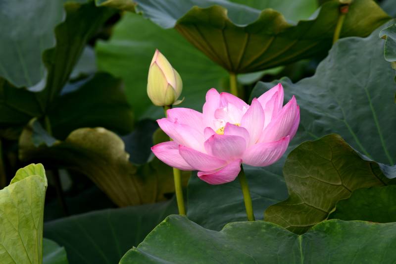 荷花绽放于绿叶间