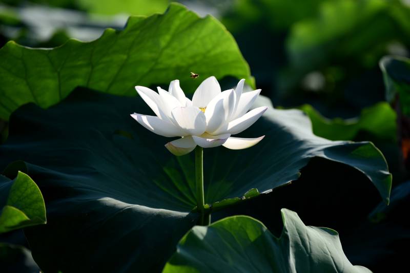 白莲绽放绿叶间
