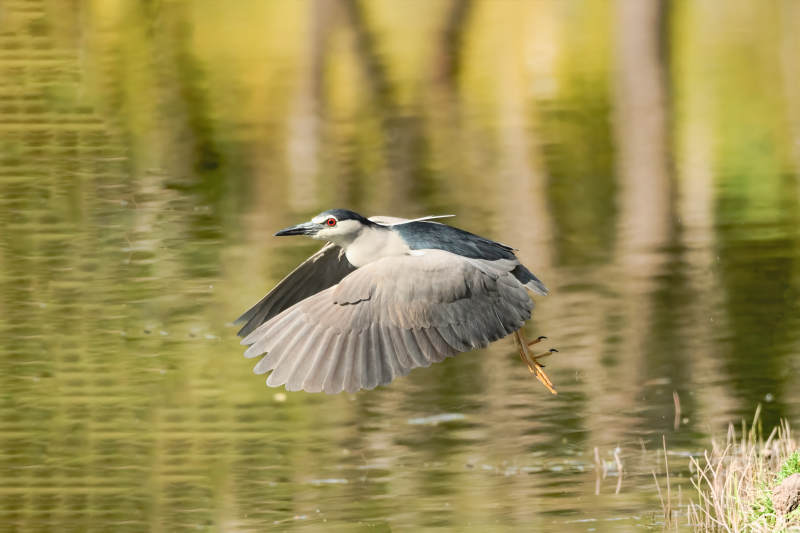 夜鹭飞翔水面