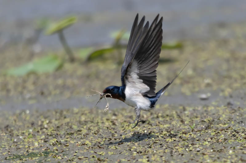 燕子衔草筑巢