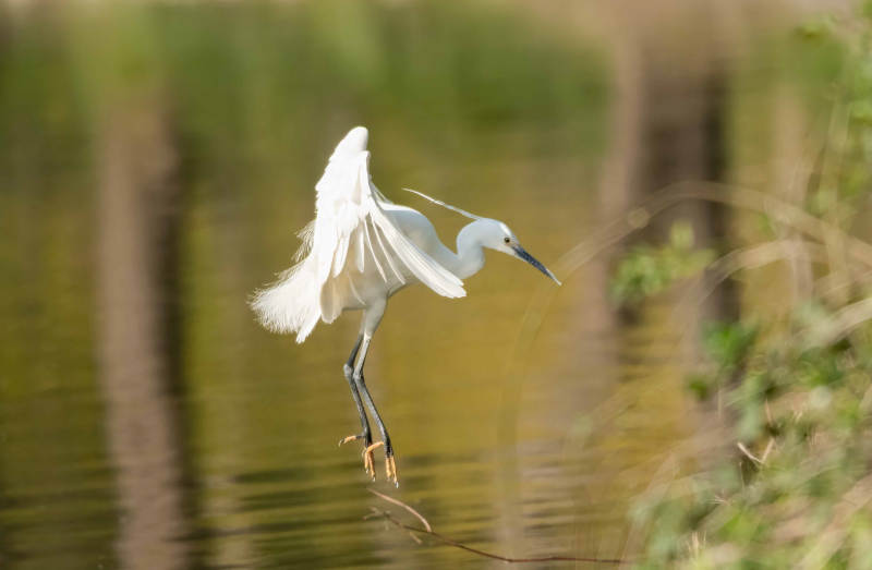 白鹭展翅水面飞