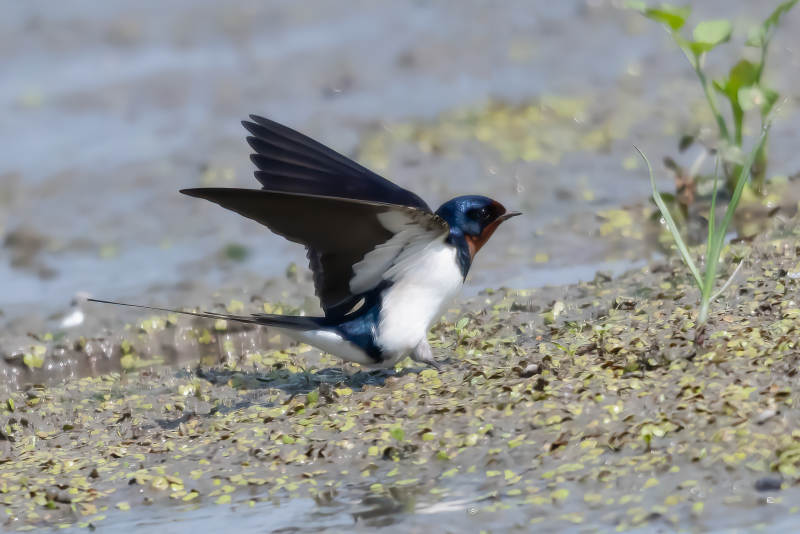 燕子栖息水边