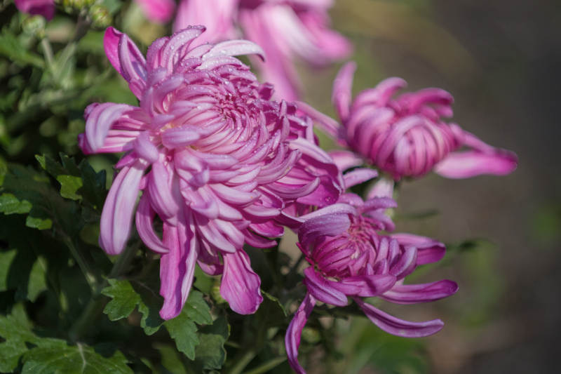 粉菊绽放 绿叶相伴