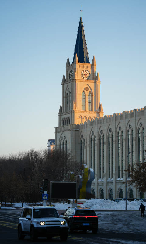 黑河教堂钟楼雪景