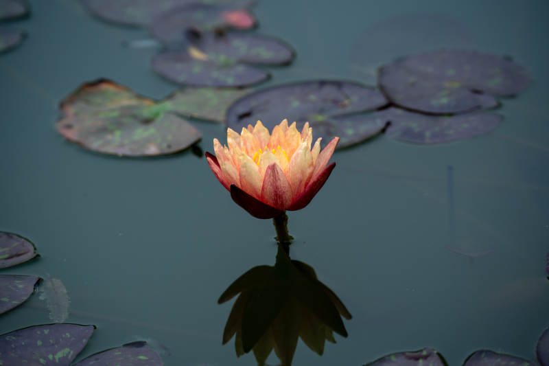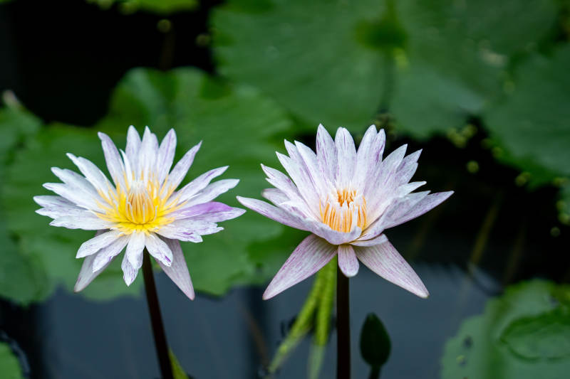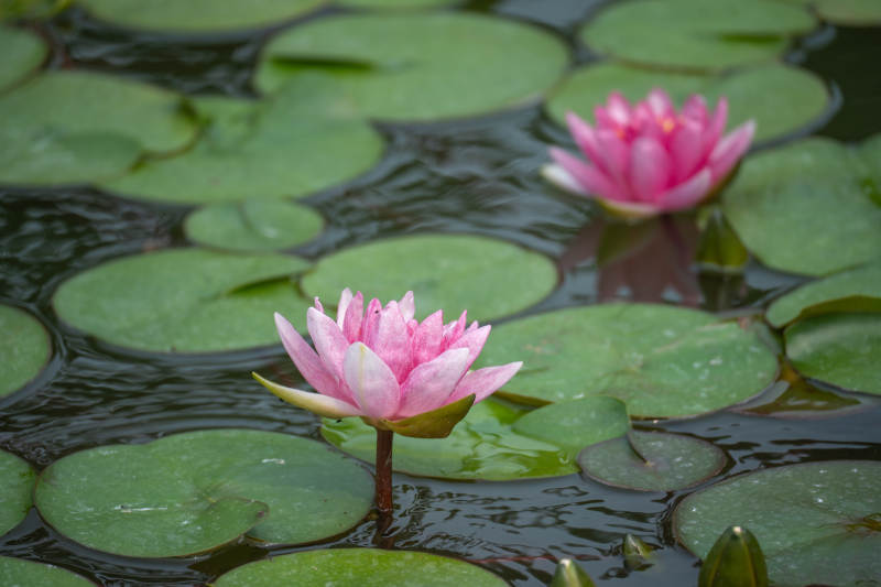 池塘睡莲静谧绽放