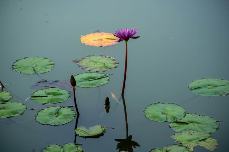 紫莲静绽水中央