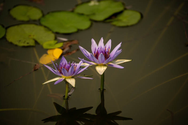 紫莲绽放水面