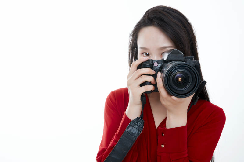 手持相机的亚洲年轻少女的肖像人像