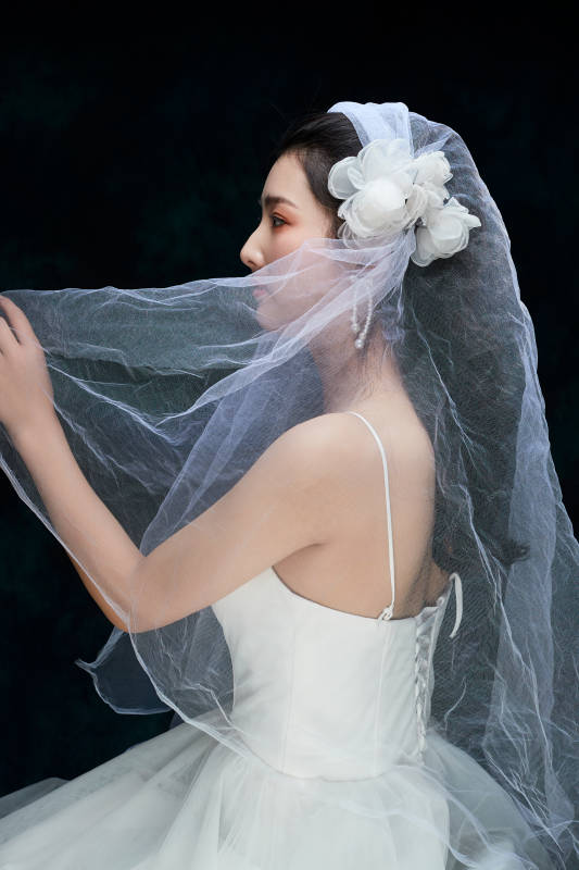黑色背景下的女性复古婚纱妆面
