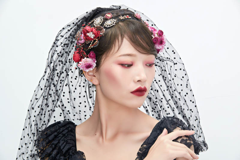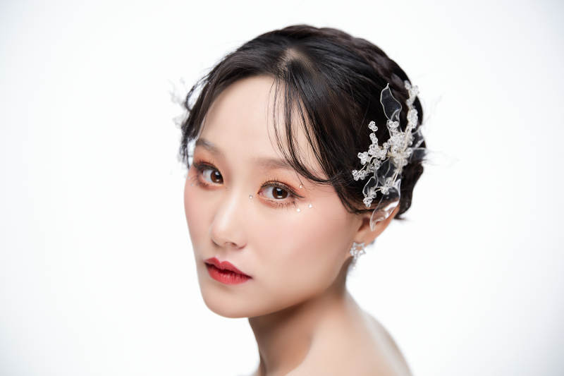 身穿中国秀禾服手撑油纸伞的亚洲女性模特