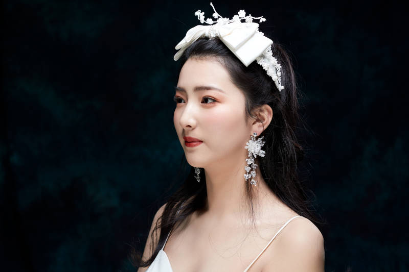 黑色背景下的女性复古婚纱妆面