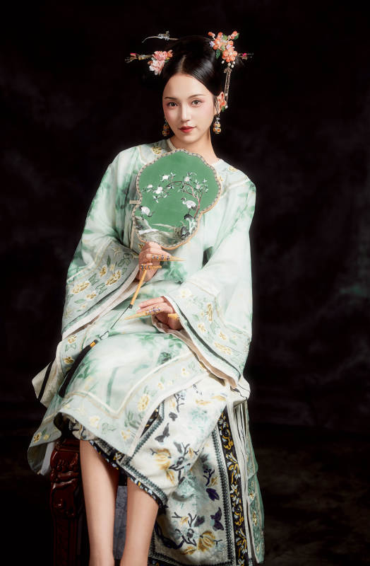 展示中国清朝宫廷服饰的亚洲女性