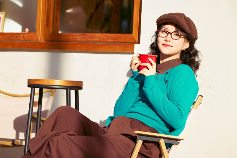 初冬季节在户外拍照的亚洲美女