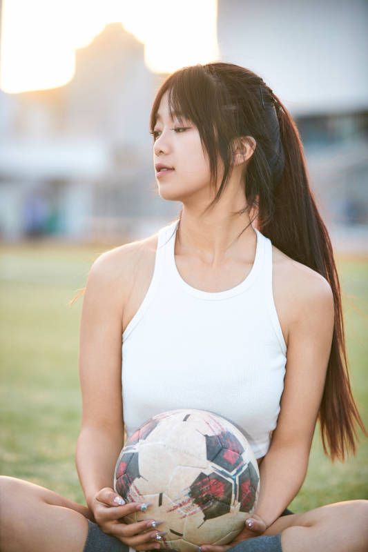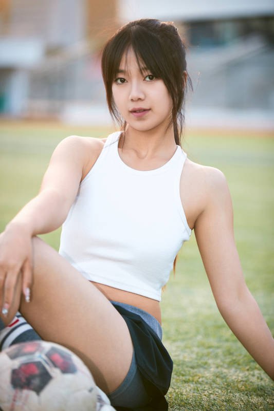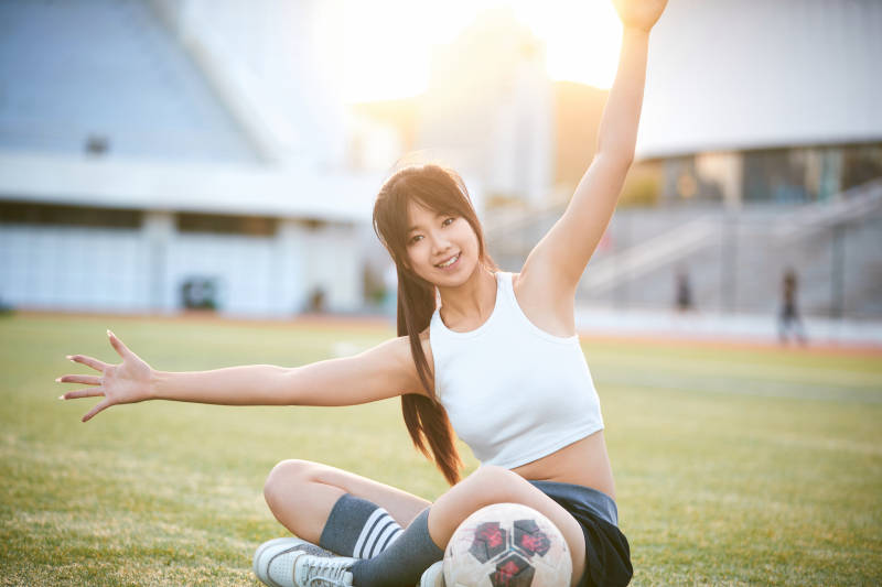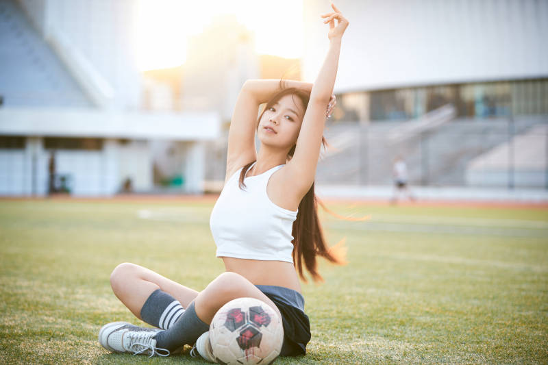 户外足球场上休息热身的运动员
