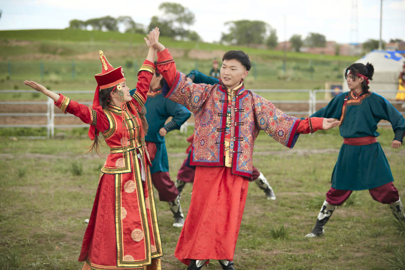 那达慕大会上表演的蒙古族传统舞蹈