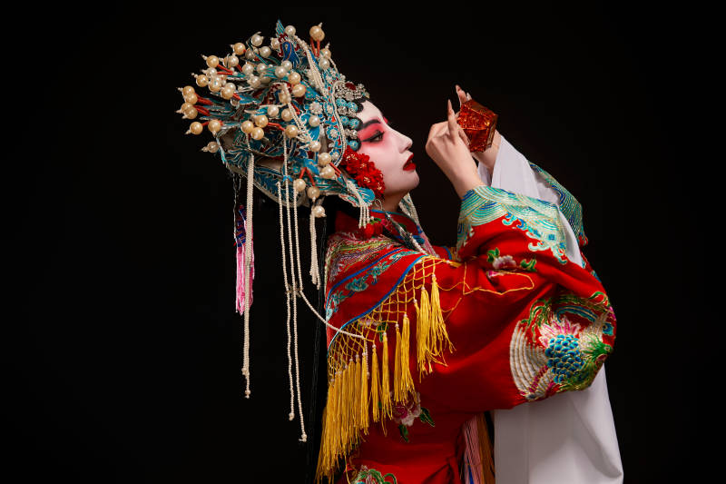 装扮国粹京剧贵妃醉酒角色形象的中国少女