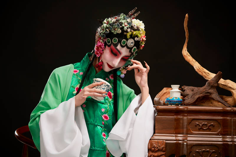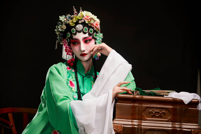 装扮国粹京剧贵妃醉酒角色形象的中国少女
