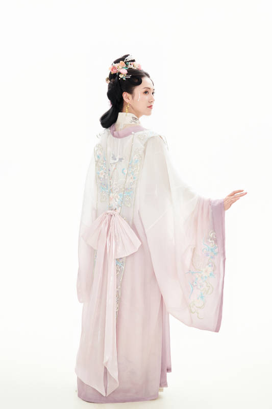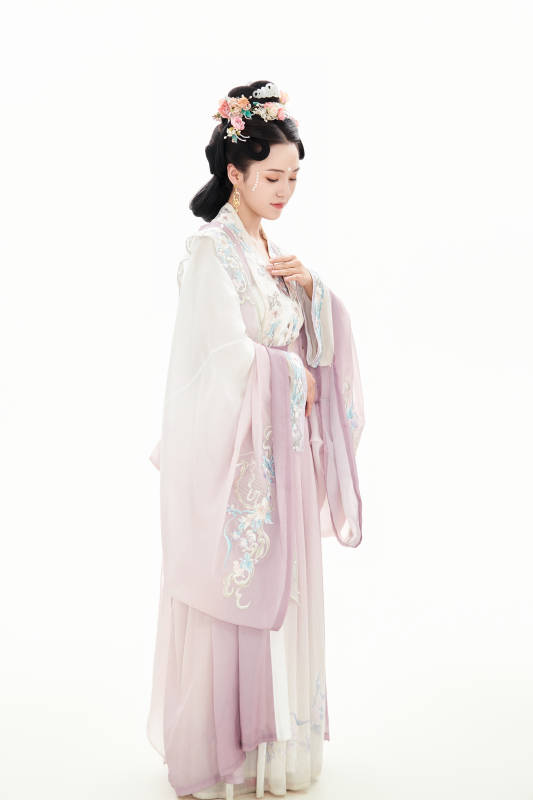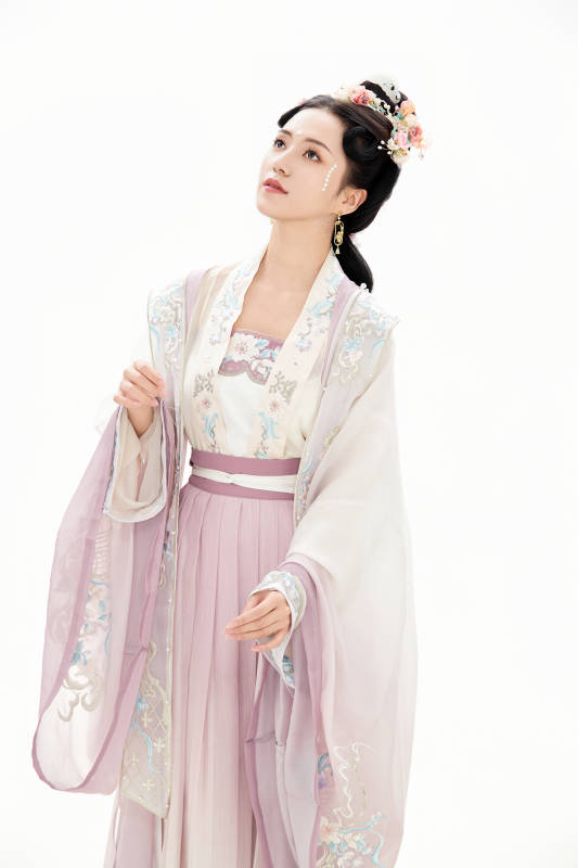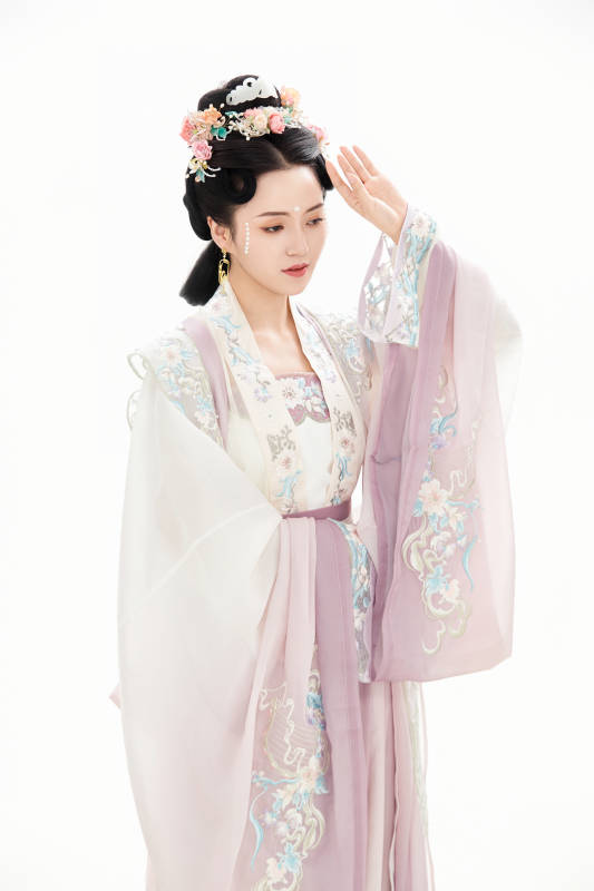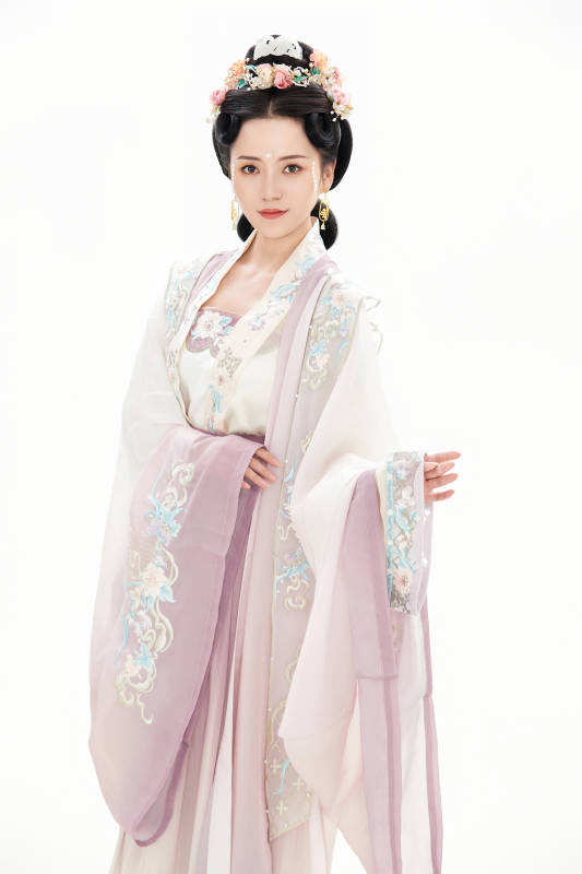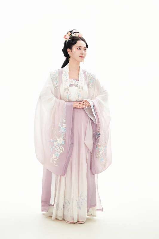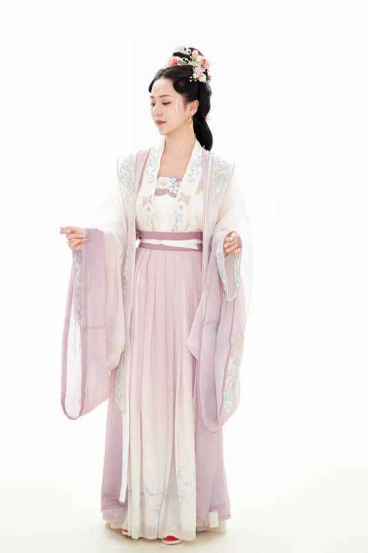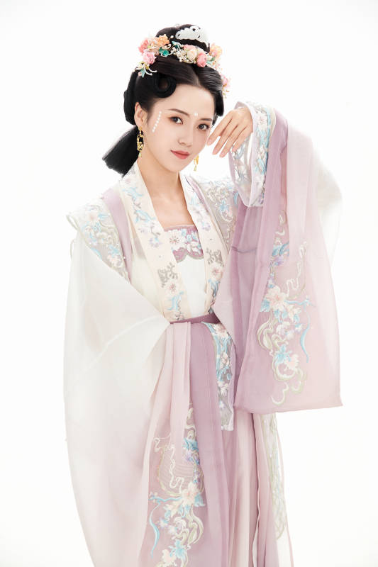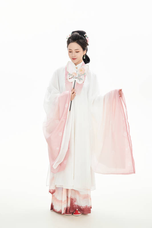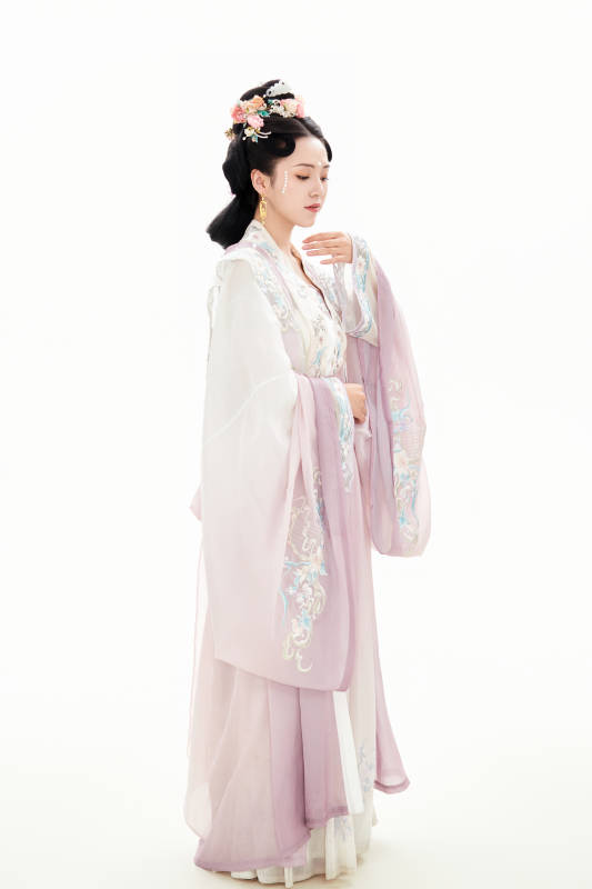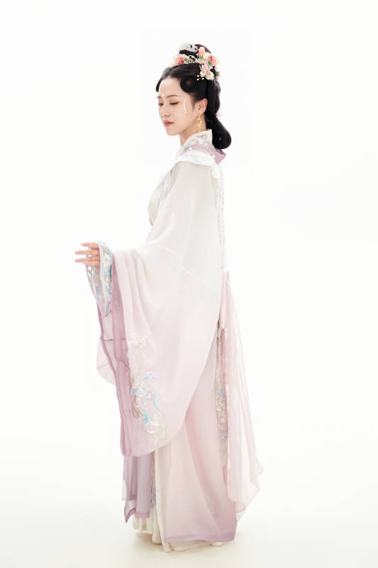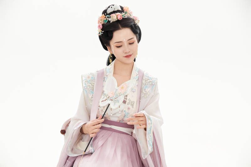 白色背景下穿着南北宋朝汉服的少女