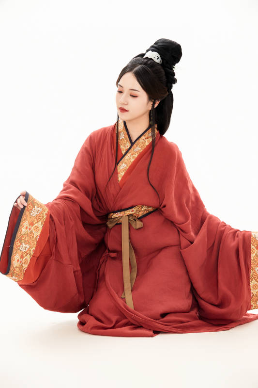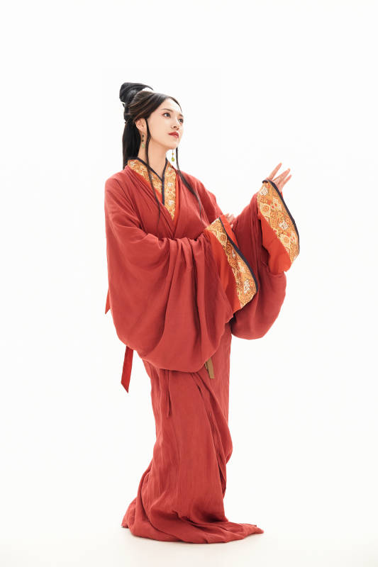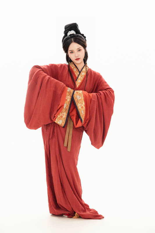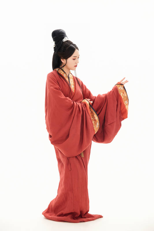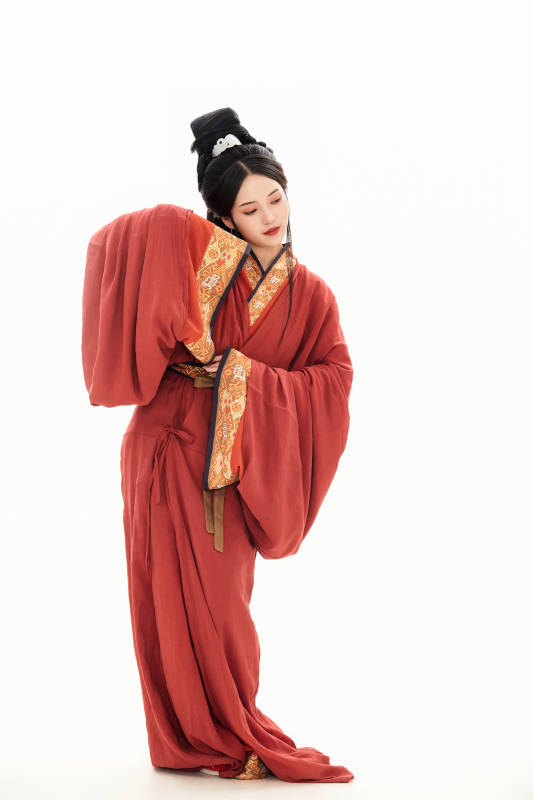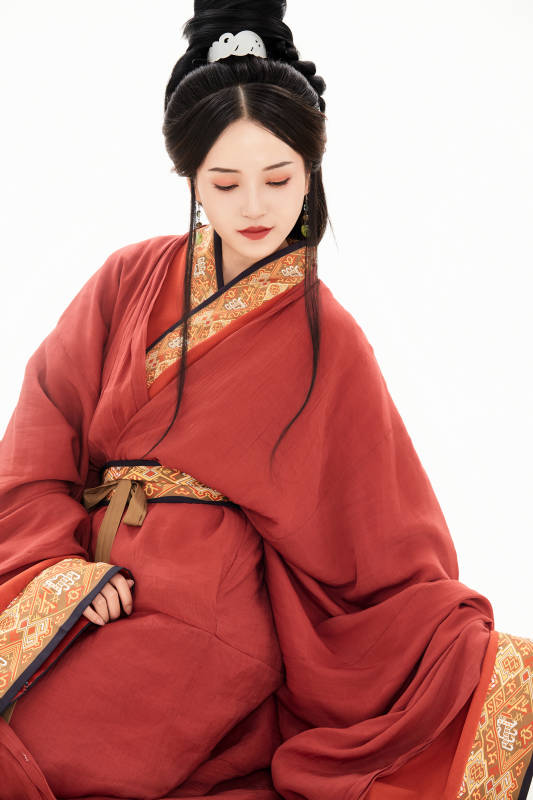 白色背景下穿着中国春秋战国时代服饰的少女