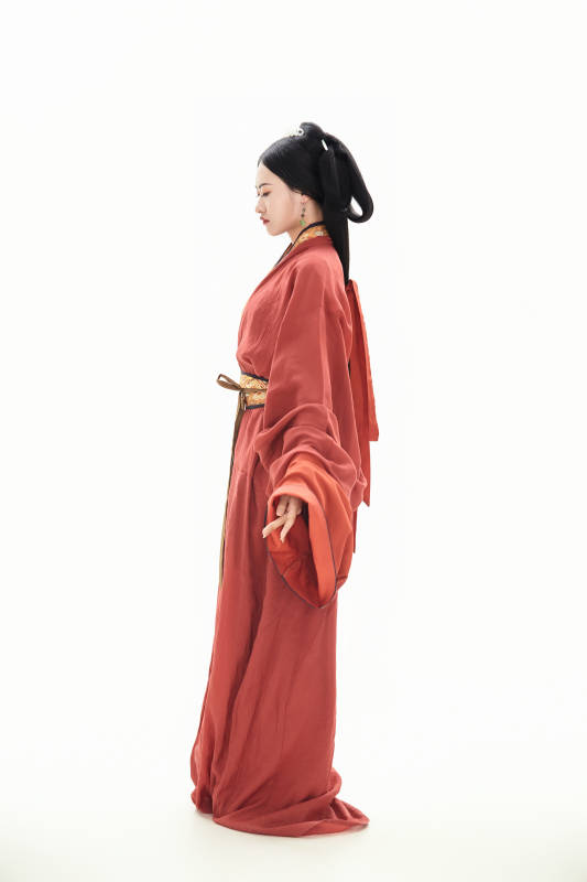白色背景下穿着中国春秋战国时代服饰的少女