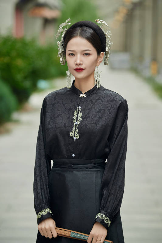 穿着中国汉族服饰马面裙的东方女性