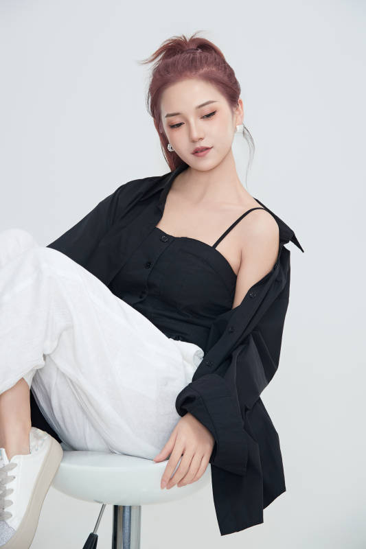 在摄影棚拍摄的青年时尚女性