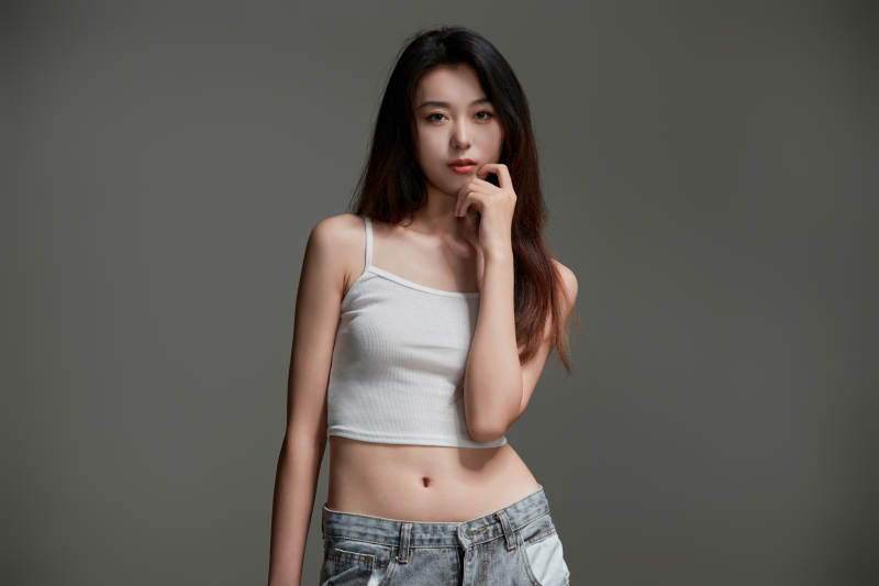 夜晚在繁华灯火的街头拍照的亚洲少女