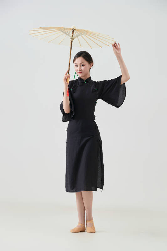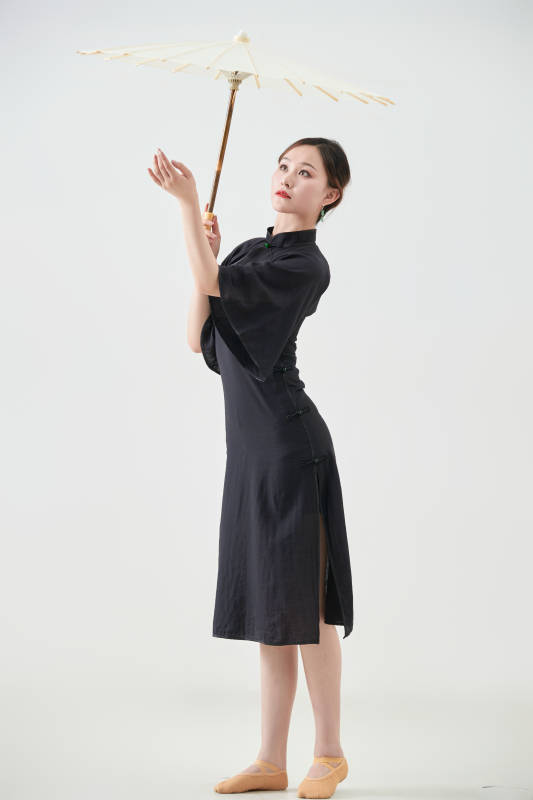 穿中式旗袍手拿油纸伞翩翩舞蹈的亚洲少女舞者