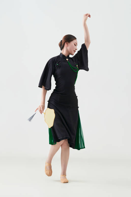 穿着中式旗袍翩翩舞蹈的亚洲少女舞者