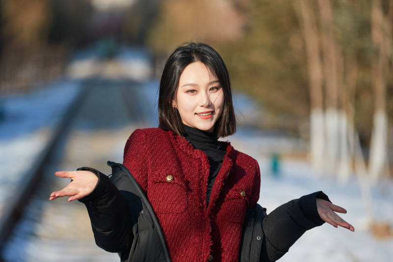 除夕在户外公园游玩的亚洲少女