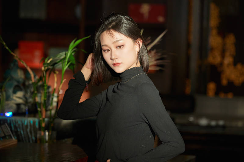 除夕在酒店餐厅庆祝新春的亚洲少女