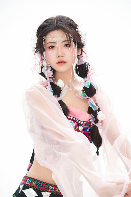 身穿少数民族哈尼族网红族服饰的东方少女