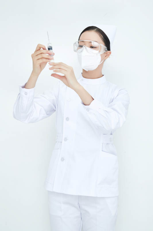 穿护士服戴口罩手执针筒的年轻女护士