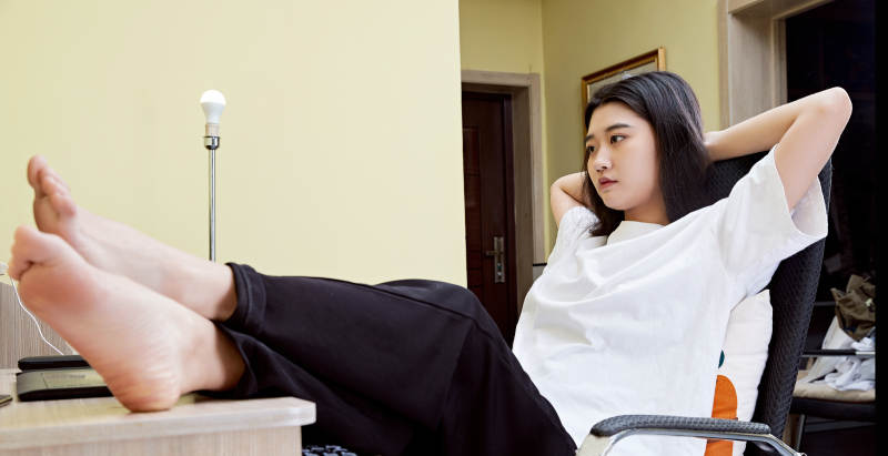 在沙发床上整理行装的年轻亚洲女性