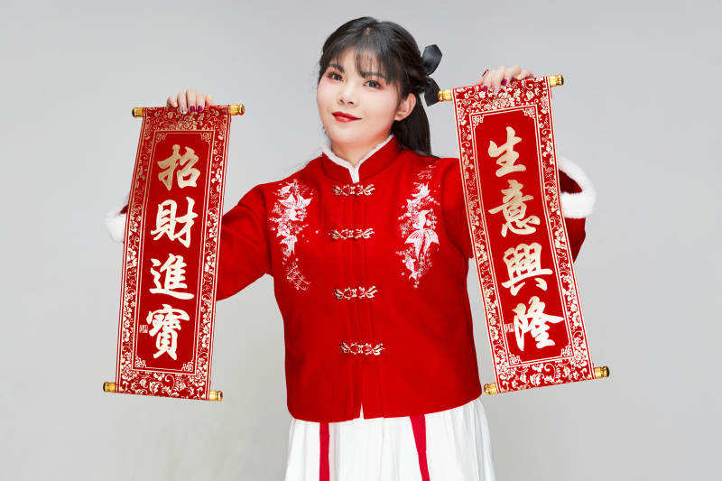手持春联身穿喜庆汉服的可爱少女