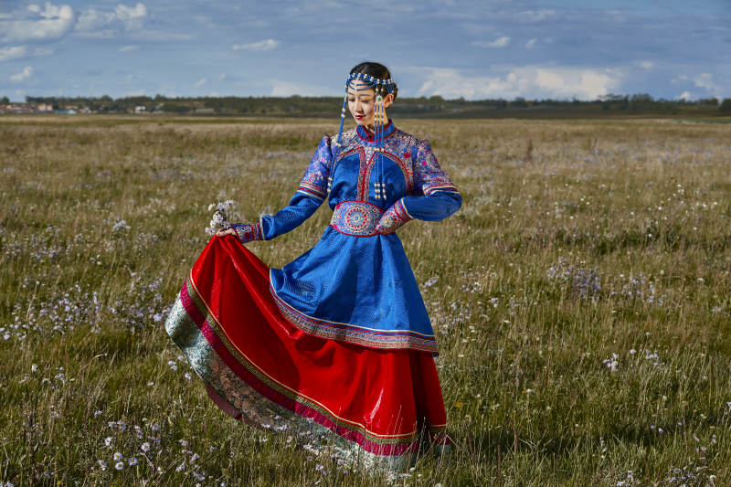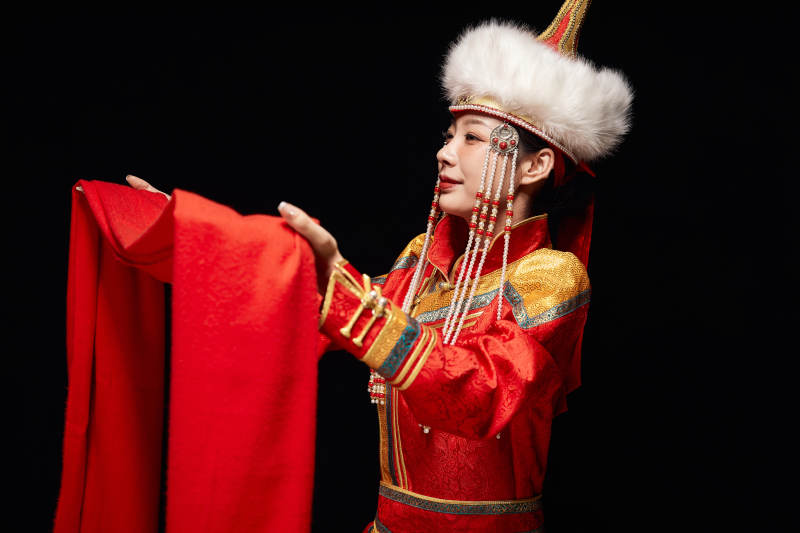 穿着蒙古族服饰的亚洲青年女性